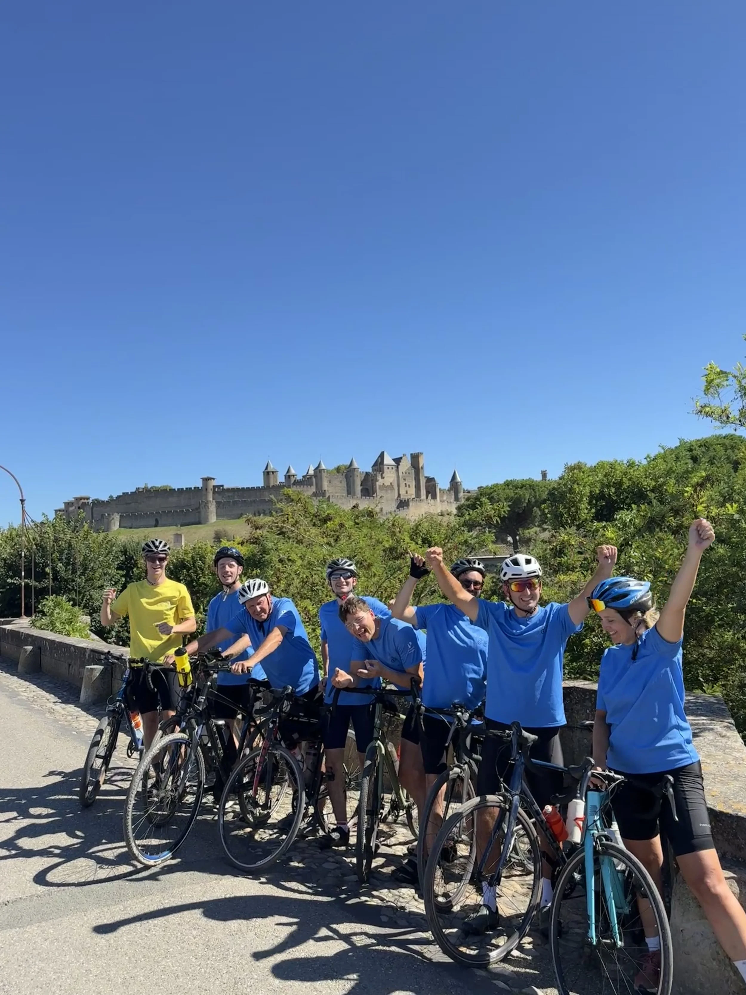 Inspired by a woman who spent her summers in Carcassonne picking grapes and selling fruit at the local market, her son and a group of friends and family have completed a 1400-kilometre charity cycle ride from Oxfordshire to the south of France in her memory.